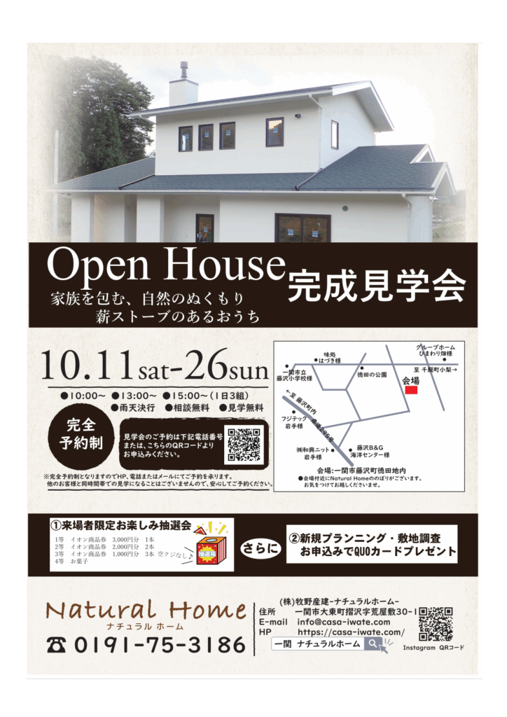 ■時間/10:00~17:00(最終受付15:00) ●雨天決行 ●完全予約制
